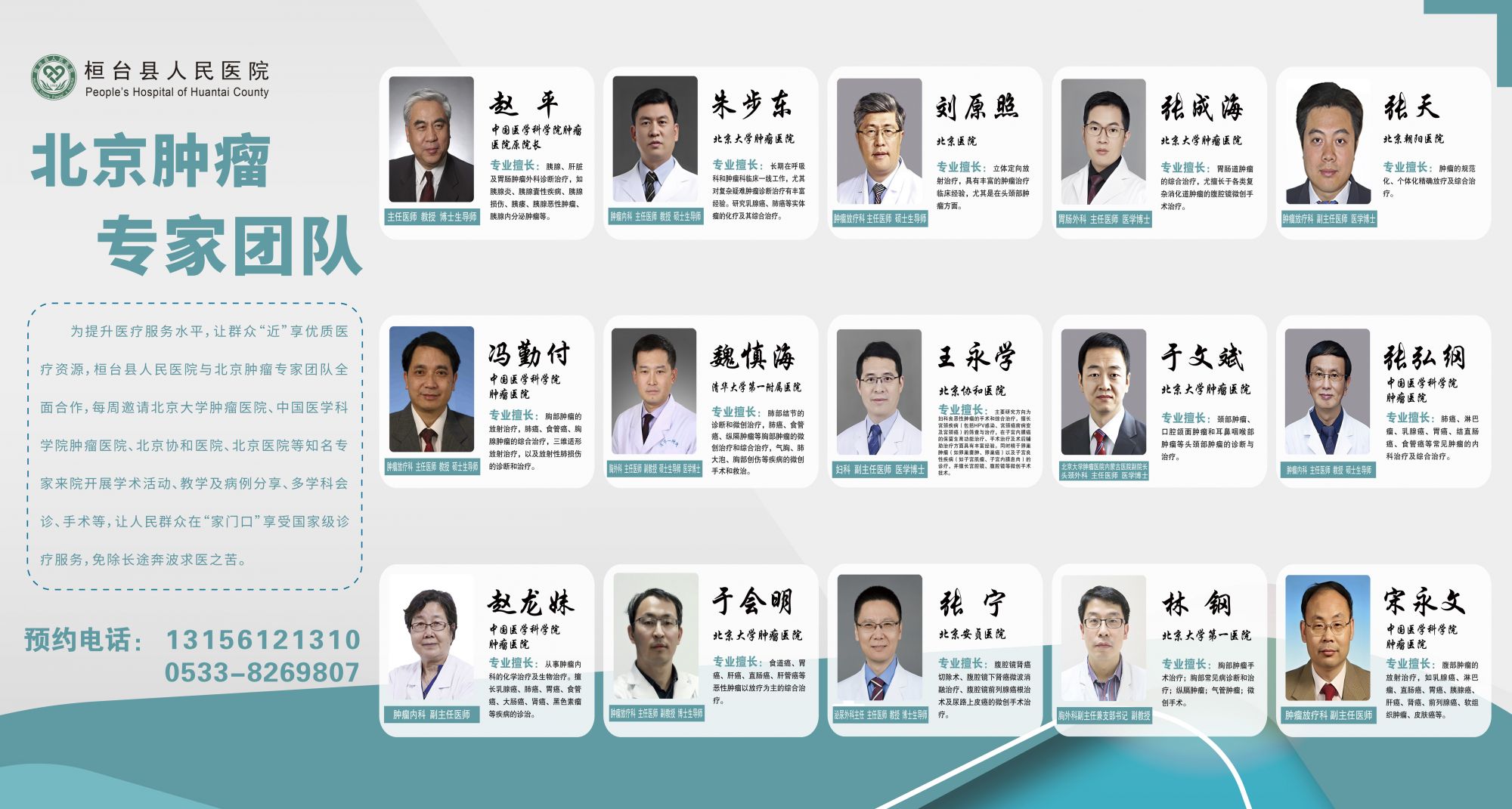医院高度重视肿瘤防治工作。自2025年引进北京肿瘤专家团队以来,已成功构建起肿瘤多学科联合诊疗(MDT)“桓医路径”,实现肿瘤患者治疗前MDT率>98%。通过引进空间分割放疗、AI辅助诊断等前沿技术,团队在高难度肿瘤手术方面取得突破,复杂手术成功率提升至92%。截至目前,北京专家团队已累计开展MDT会诊50余场,服务患者超1300人次。 依托“智慧筛查、精准诊疗、全程管理”三位一体防治体系构建,医院肿瘤诊疗能力与服务水平实现整体提升,为县域肿瘤防治工作提供了有力支撑。 下一步,医院将充分依托联盟平台专家资源与技术优势,进一步强化多学科协同机制,优化联合诊疗流程,积极引进并推广应用肺肿瘤早期筛查与无管微创技术,持续深化“癌症防治一张网”项目,推动筛查、诊断、治疗、康复全程管理网络在县域走深走实,不断提升肿瘤防治能力,努力为县域居民提供更优质、便捷、高效的医疗卫生服务。