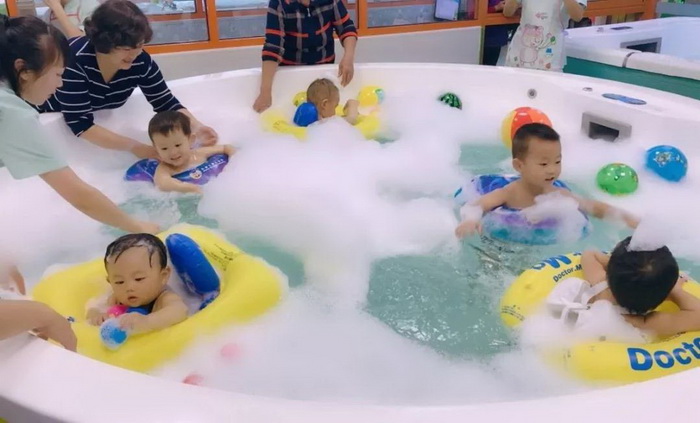 游泳馆与马博士游泳馆合作,开展水育、水中早教,拥有专业儿童游泳教练和专业水育早教老师进行一对一全程教学。锻炼孩子水中憋气、闭气,直至熟悉水性,在水中自由嬉戏玩耍。正常婴儿足月时就可接受水育课程的训练。