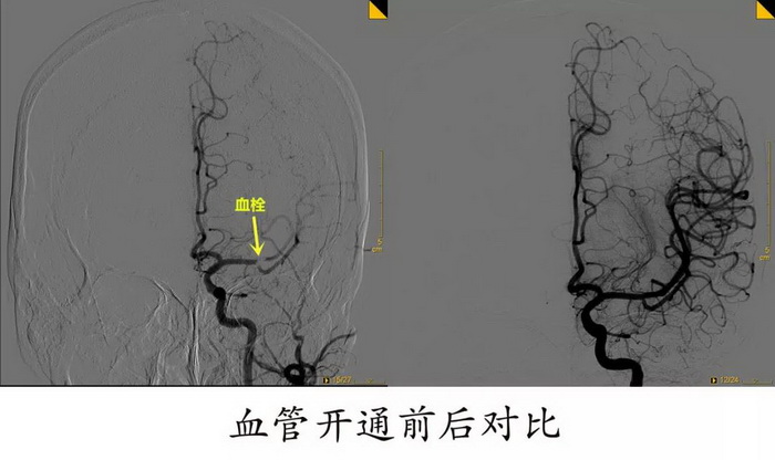 脑梗死发病6小时内是救治的黄金时间,若能在6小时内就诊,经静脉溶栓和介入取栓治疗,可显著提高闭塞血管再通率,大大降低患者的死亡率及致残率。