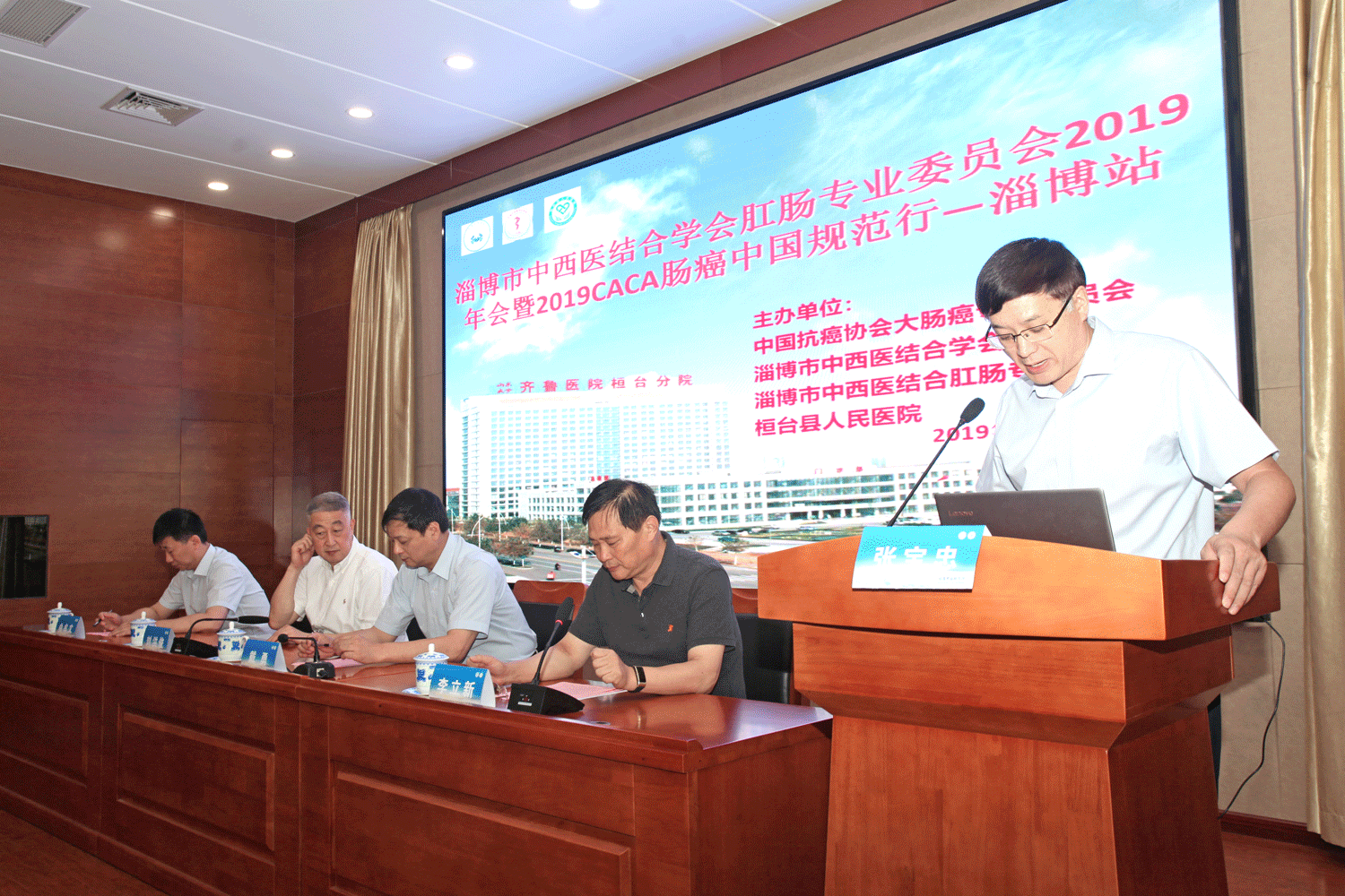 2019年7月7日,淄博市中西医结合协会肛肠专业委员会年会暨2019CACA肠癌中国规范行学术会议在桓台县人民医院视频会议厅举办。山东省立医院保健外科主任刘洪俊教授,山东大学齐鲁医院普外科副主任、肛肠外科主任戴勇教授,中国中医科学院广安门医院肛肠科副主任曲牟文教授,桓台县人民医院党委书记、院长李立新出席会议。会议邀请了来自全市肛肠及相关专业人员近200人参加会议。桓台县人民医院业务副院长张宝忠主持会议。