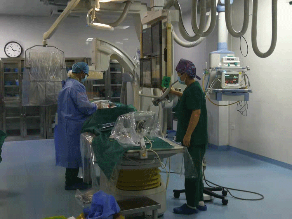 66岁的宋大爷不小心从房顶坠落造成骨盆骨折,被紧急送往附近医院,因患者病情严重,当地医院无法处理,紧急送至县医院急诊科。到达我院时患者已处于失血性休克状态,CT扫描显示骨盆多发骨折并盆壁血肿、盆腔大量积血。患者病情十分严重,转入骨科后虽积极抢救,仍不能维持有效血压。 骨科医师立即请ICU、介入血管外科等相关科室进行紧急会诊,会诊意见患者为骨盆骨折导致盆腔大动脉出血所致。因为动脉压力大,血流快,药物治疗无效,而且由于血管深埋在盆腔里,常规手术风险极大、难度极高,决定立即行血管介入手术。 介入血管外科王立军主任、李俊杰主治医师在局麻下,立即行髂内动脉栓塞术,手术顺利,患者血压逐步平稳回升,术后将患者送至重症监护室。经过积极治疗后,现患者病情稳定,已转至骨科进一步治疗。