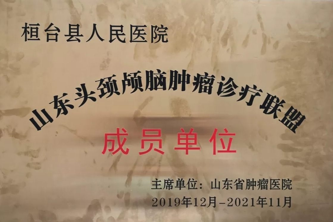 12月14日,“山东头颈颅脑肿瘤诊疗联盟”成立大会在济南召开,我院肿瘤科成为“山东头颈颅脑肿瘤诊疗联盟”成员单位,中国工程院院士于金明教授亲自为各单位授牌。
