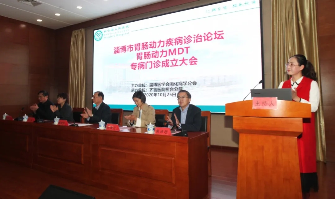 会议开幕式及胃肠动力MDT、专病门诊揭牌仪式 桓台县人民医院党委书记、院长李立新致辞。李立新院长首先对各位专家的到来表示欢迎,对多年来给予医院支持和帮助的各兄弟单位表示感谢。他指出,成立多学科合作的胃肠动力MDT,对于整合医院各方面优势力量,提高医院胃肠动力疾病的认知度、规范疾病的检查、评价及治疗具有重要的里程碑意义。 淄博市医学会消化病学分会主任委员黄坤明教授致辞。他代表淄博市医学会消化病学分会,对齐鲁医院桓台分院成立胃肠动力MDT、专病门诊表示祝贺。希望消化内科借助胃肠动力MDT的成立,把科室做大做强,做出自己的特色。 山东省医学会消化分会胃肠动力学组秘书刘岚教授在致辞中表示,胃肠功能性疾病是极易引起临床误诊的疾病,齐鲁医院桓台分院成立胃肠动力MDT及专病门诊,走在了全省县市级医院的前列,将造福更多百姓,并宣布“齐鲁医院桓台分院胃肠动力MDT正式成立”。 李立新院长、郝洪升教授共同为功能性胃肠病专病门诊、便秘专病门诊揭牌。 学术交流 南京中医药大学附属南京中医院、全国中医肛肠医疗中心薛雅红教授做了《基于盆底中心模式下排便障碍性疾病的诊治思路》专题讲座。 山东大学齐鲁医院消化内科郝洪升教授做了《肠易激综合征(IBS)的诊断思路》专题讲座。 山东大学第二医院消化内科刘岚教授做了《高分辨率食管测压与芝加哥分类标准》专题讲座。 桓台县人民医院消化内科刘冬冬主治医师做了GERD 合并功能性胃肠病病例分享。 专家们深入浅出的专题讲座,引起了与会人员的共鸣。大家纷纷表示,通过会议,进一步加深了对胃肠动力相关疾病的认识,解决了临床工作中的疑难问题,今后将通过多学科合作的方式,规范开展胃肠动力检查,综合评价和治疗此类疾病,为区域内群众提供更规范、更优质的服务。 齐鲁医院桓台分院胃肠动力MDT 齐鲁医院桓台分院胃肠动力MDT 是由消化内科、内镜诊疗中心、肛肠外科、胃肠外科为主导,精神卫生科、耳鼻喉科、呼吸内科、影像科等组成的多学科诊疗合作小组。通过在胃食管反流病、功能性胃肠病等胃肠动力紊乱疾病的诊治中交流合作,规范诊疗,为市内乃至省内胃肠动力相关疾病患者提供更优质的医疗服务。 近年来,医院积极推进“双向”模式,提升胃肠道诊疗专业水平,纵向联系上级医院,横向深入开展院内协作。与解放军东部战区总医院合作建立黎介寿院士工作站,开展肠瘘规范化诊疗。胃肠外科、消化内科与火箭军总医院就胃食管反流病联合开展手术诊疗。消化内科与山东大学齐鲁医院、山东省立医院,肛肠外科与北京广安门医院均建立了密切合作,让老百姓不出县就可以享受到省内外专家的医疗服务。 医院改造升级了内镜中心,引进国内先进的奥林巴斯290高清放大内镜、超声内镜、磁控胶囊内镜,成立胃肠动力检查室,设置高分辨率测压设备、24小时胃酸监测设备等,常规开展多种内镜下治疗,包括ESD、ESE、ESVD等,被国家卫健委评为“国家消化道早癌内镜筛查基地”。 胃肠动力MDT的成立,将使我院在胃肠动力相关疾病的标准化、规范化诊疗方面迈上新台阶。