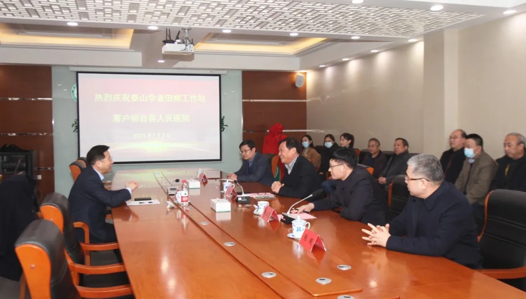 1月3日,桓台县人民医院“泰山学者田辉工作站”揭牌仪式在我院小视频会议厅举行。山东省泰山学者特聘专家、齐鲁医院副院长田辉,桓台县人民医院党委书记、院长李立新,副院长张宝忠,医务科主任马刚及相关科室负责人参加仪式。仪式由医院副院长张宝忠主持。