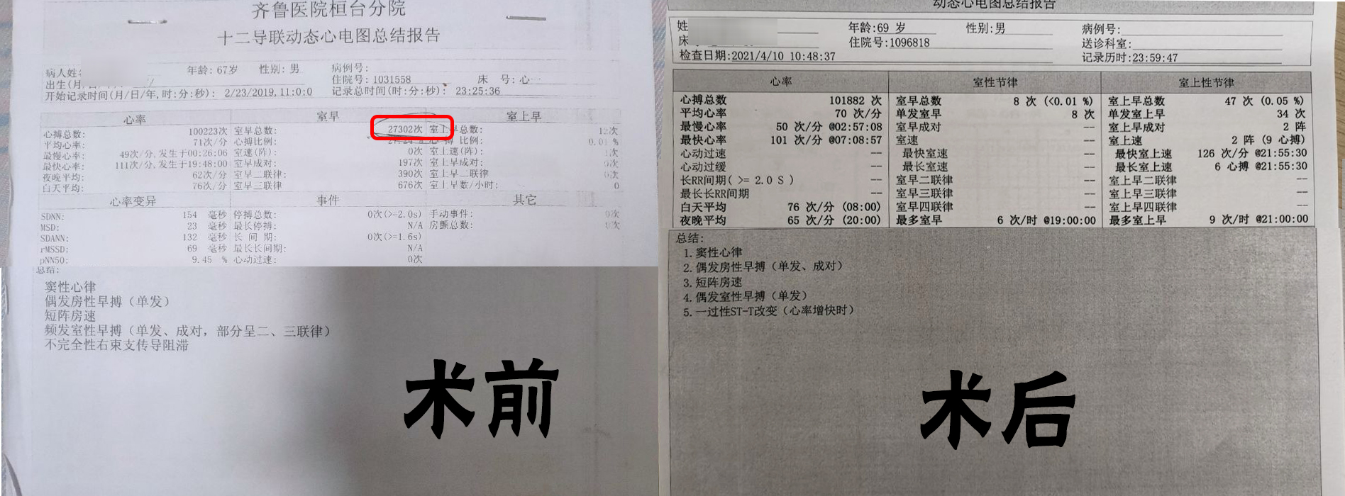 68岁的田大爷早搏多年,吃了很多药效果都不理想,尤其是近几年更为严重。24小时动态心电图检测显示早搏总数高达三万次,也就是说心脏每跳三下就有一次早搏发生,这样下去田大爷的心脏功能会受到严重影响。心内科一病区王磊主任详细询问病史进行评估后,决定行室性早搏射频消融手术,为其彻底根除早搏。