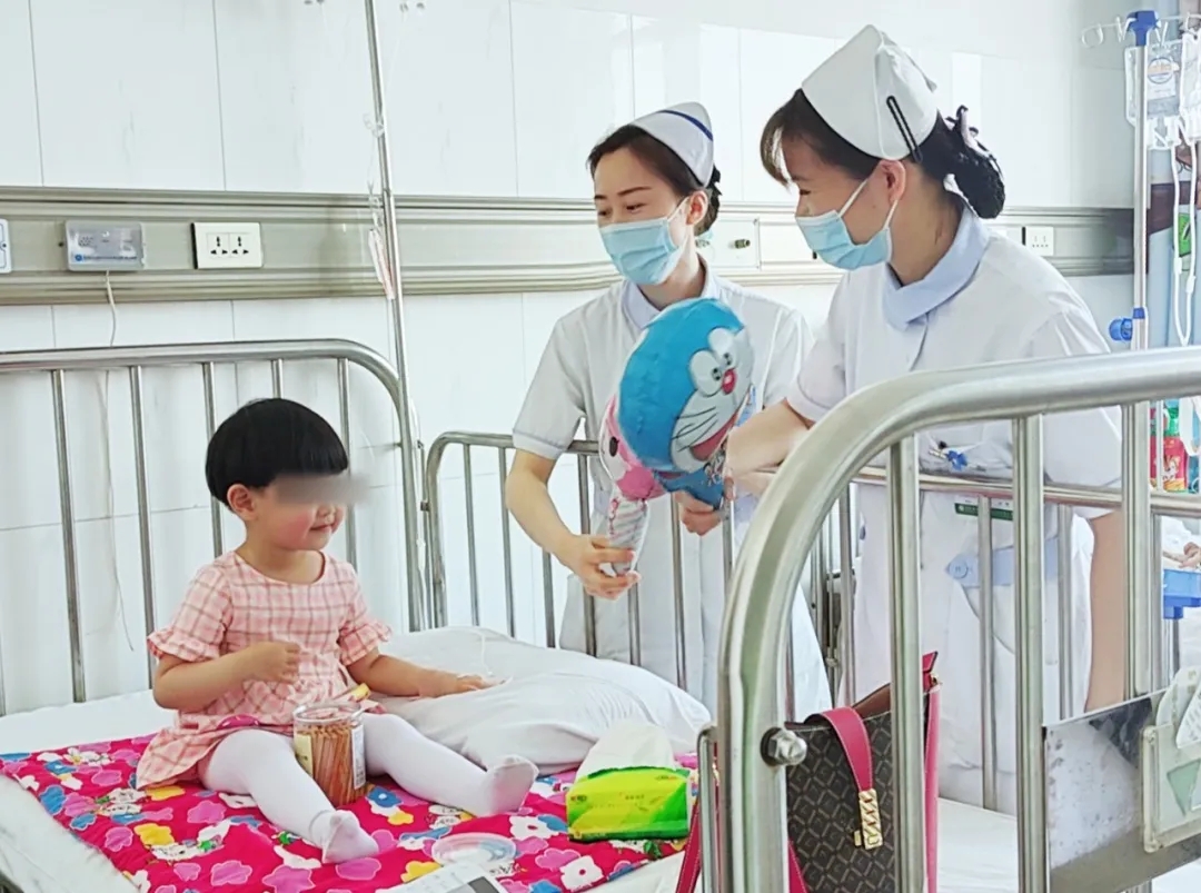 6月1日,新生儿科护理人员向住院儿童送上了礼物和节日的祝福,小朋友们纷纷露出了开心的笑容。