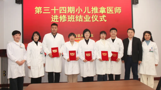 2月5日,我院举办第34期小儿推拿医师进修班结业仪式。院党委书记张奎国,院长助理、公共卫生科主任宋倩,科教科主任盛杰,小儿推拿科主任关淑芳及5名进修学员参加仪式。