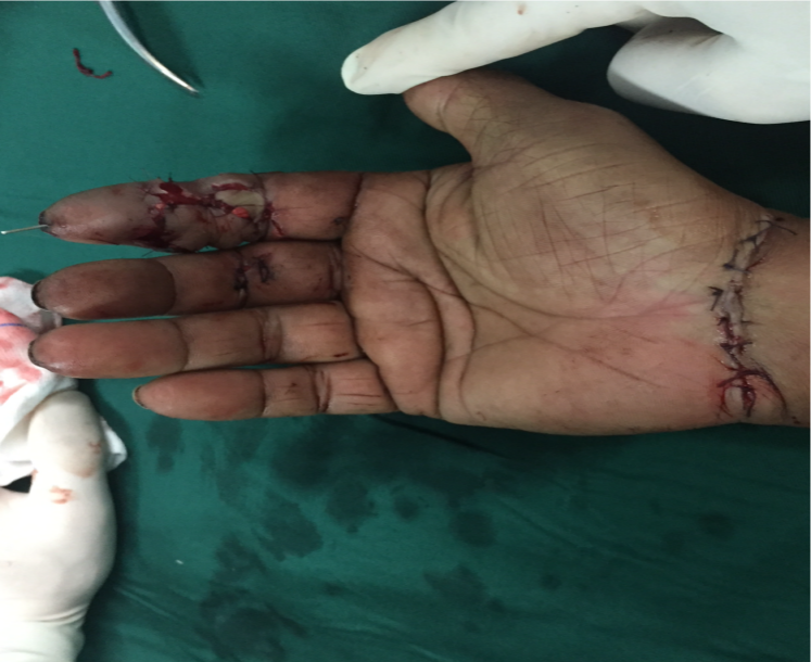 典型病例2:严重手外伤,急诊行清创肌腱神经血管吻合,功能恢复良好