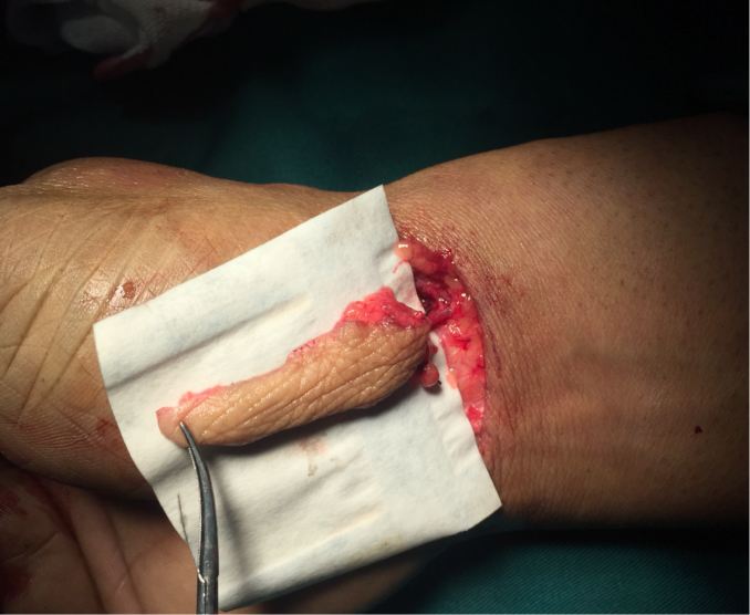 典型病例1:拇指末节软组织缺损,急症行游离踇趾腓侧瓣再造修复