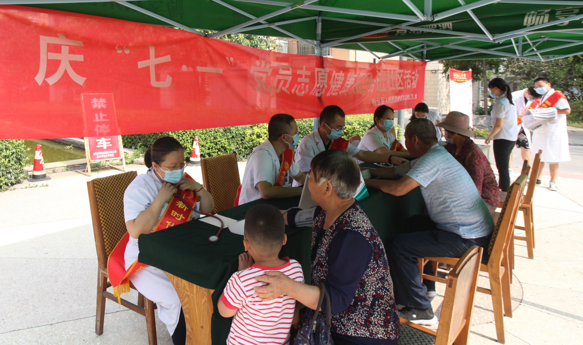 为纪念中国共产党成立99周年,继承和弘扬党的优良传统。7月1日,我院组织党员到金太洋小区开展庆“七一”党员志愿健康服务进社区活动。