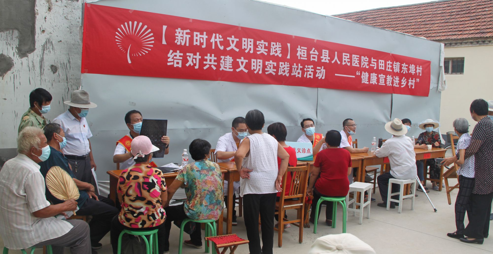 为深入贯彻落实习近平总书记关于建设新时代文明实践中心的重要指示精神,8月17日,桓台县人民医院到田庄镇东埠村文明实践站,开展结对共建文明实践站活动——“健康宣教进乡村”义诊。