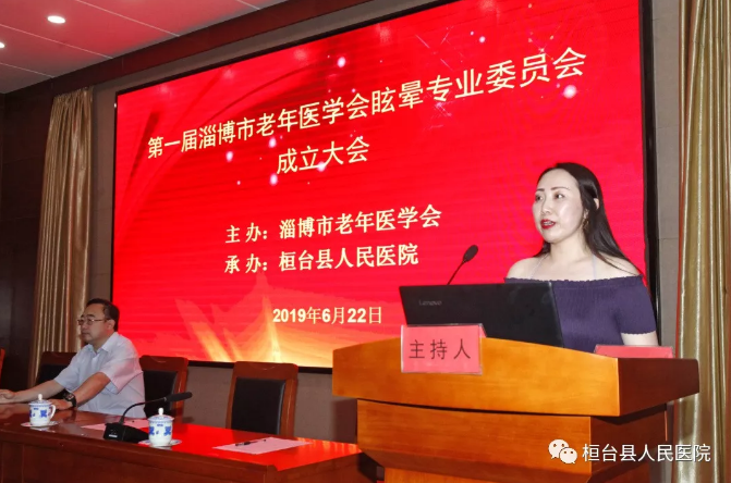 2019年6月22日,淄博市老年医学会眩晕专业委员会成立大会暨第一届淄博市眩晕高峰论坛在我院视频会议厅举办。淄博市老年医学会会长李玉,淄博市中心医院副院长张增,北京医院眩晕中心负责人王利一,山东大学第二医院神经内科副主任孙琳,桓台县人民医院党委书记、院长李立新出席会议。会议邀请多名国内知名眩晕专家进行讲座,来自全市眩晕相关专业医务人员近200人参加会议。桓台县人民医院神经内科一病区主任李爱平主持会议。