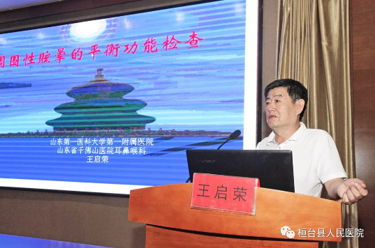 山东省千佛山医院耳鼻咽喉科主任王启荣教授进行《周围性眩晕的平衡功能检查》专题讲座。