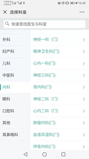 选择就诊科室