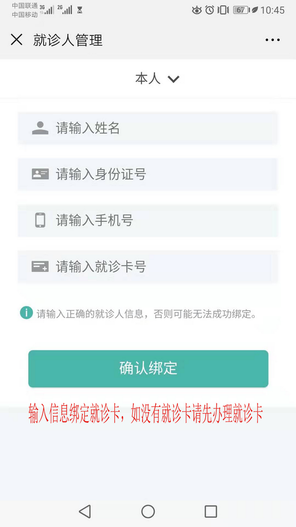 添加就诊卡,绑定就诊人