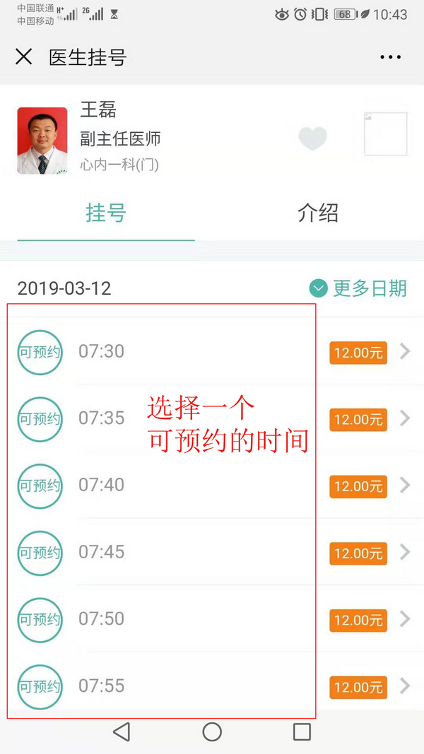 选择一个可预约的就诊时间