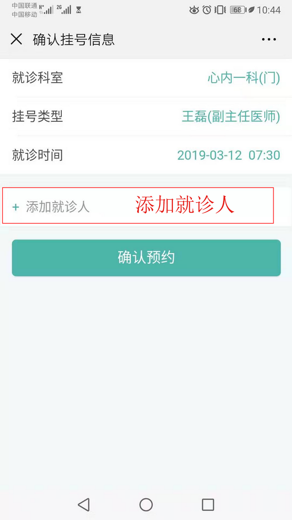 选择就诊人,如果微信没有绑定就诊卡,需要添加就诊人